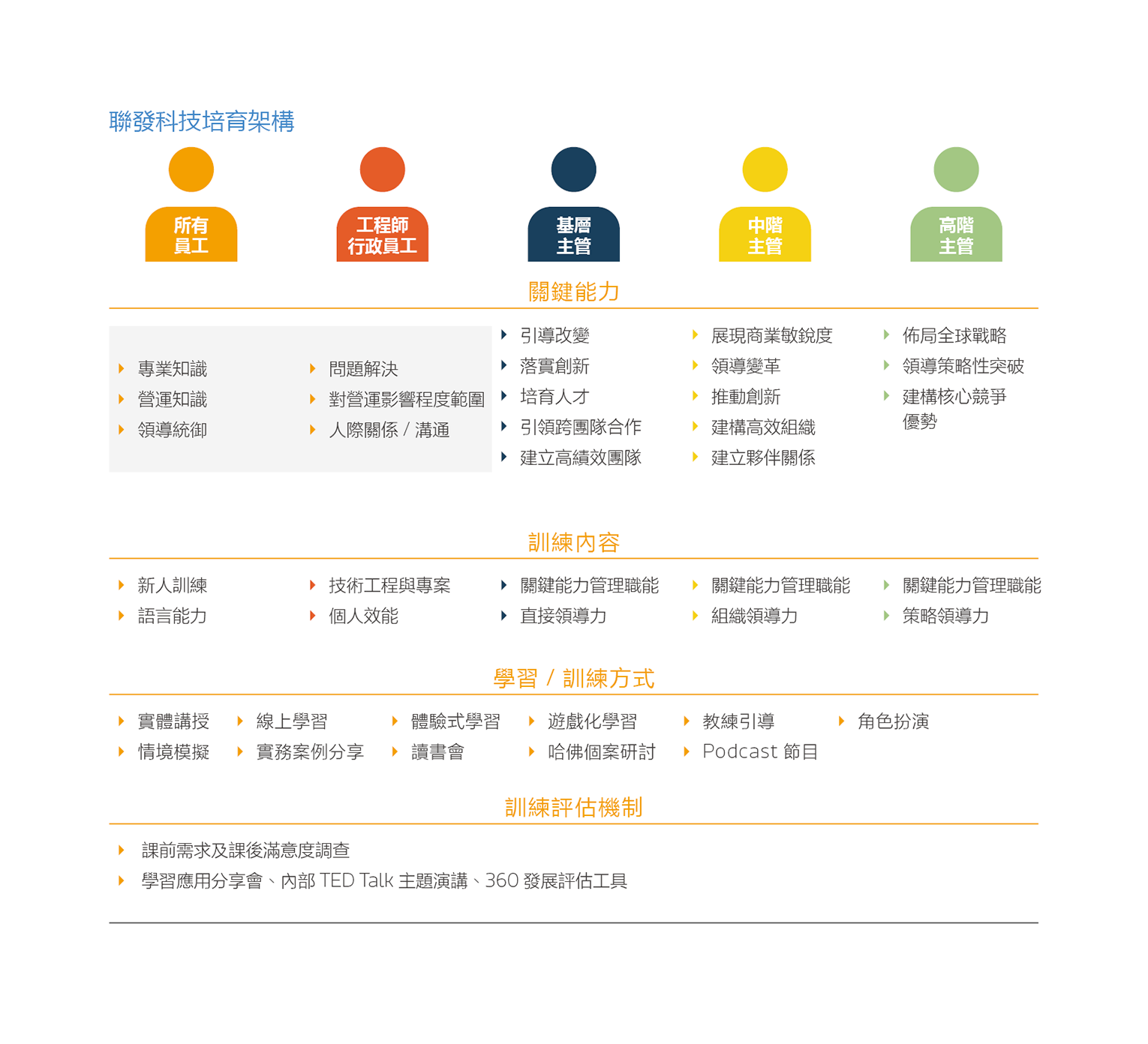 | 溝通管道 | ◢ 公司內部學習發展網站 ◢ 線上學習平臺 |